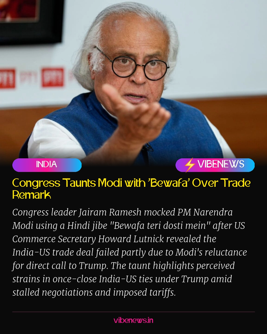 Political taunts in India hit different with their poetic flair—Congress's "Bewafa teri dosti mein" jab at Modi over Lutnick's trade deal revelation had me chuckling yet pondering deeper ties. On January 9, 2026, Jairam Ramesh shared the podcast clip on X, implying betrayal in friendship after Lutnick said deal was ready but Modi didn't call Trump personally within timeline, leading US to step back and prioritize others.