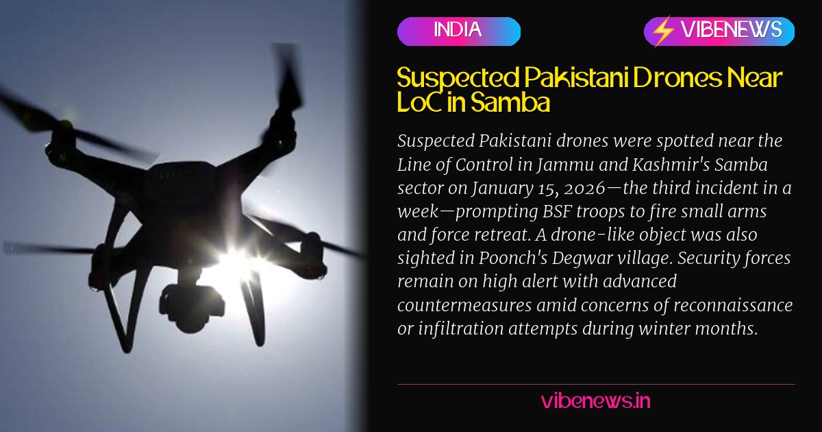 Border security incidents like these repeated drone sightings along the LoC always keep me on edge—they underscore how fragile the peace is and how technology enables constant probing without direct confrontation. On January 15, 2026, BSF personnel in Samba's Ramgarh sector detected suspected Pakistani drones near the border in Keso Mahansan village, swiftly firing small arms to challenge and deter them, forcing retreat without breach. Simultaneously, a drone-like object hovered for ten minutes over Degwar village in Poonch around 7:30 pm, met with similar response.