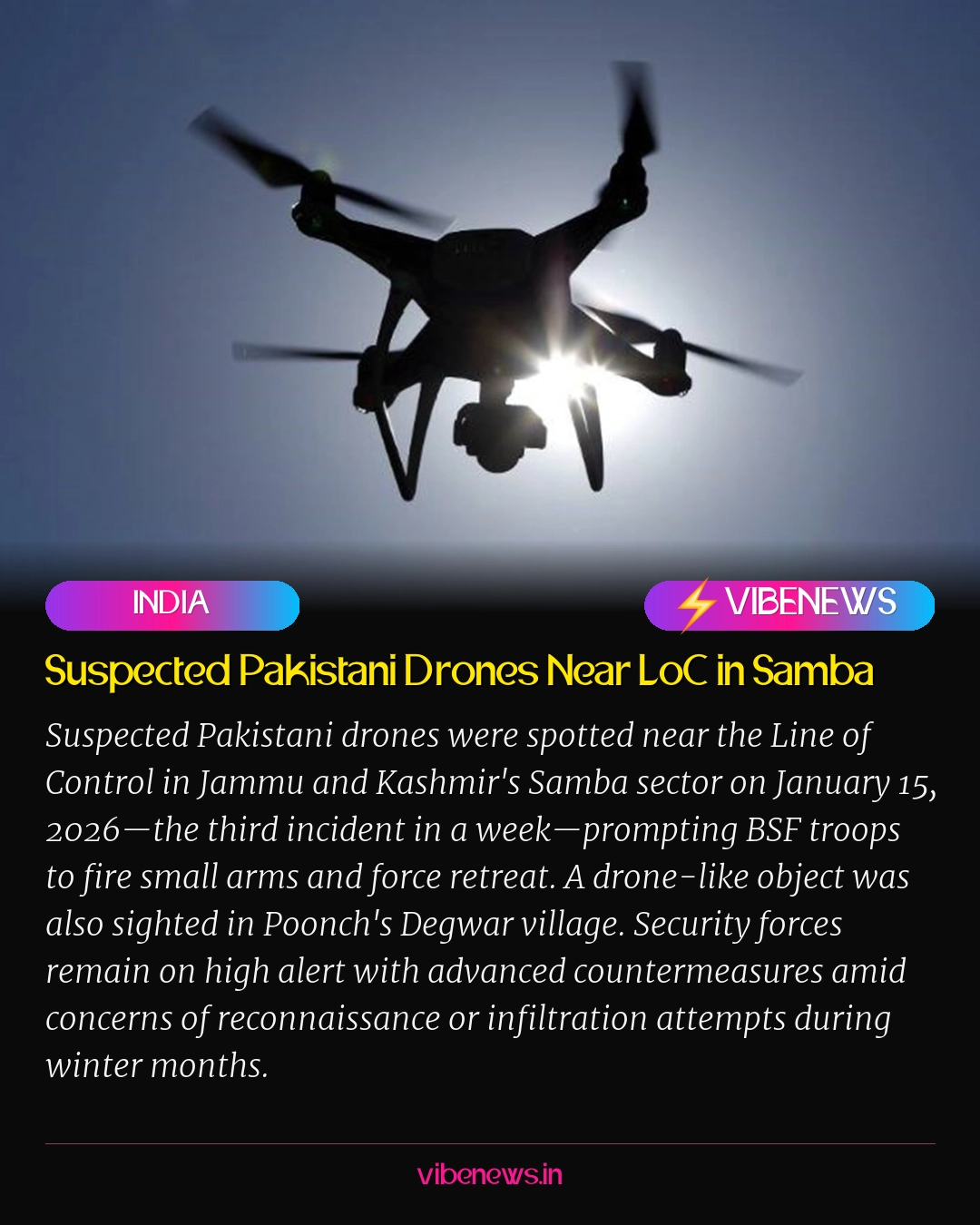 - Suspected Pakistani drones sighted near LoC Samba sector Ramgarh Keso Mahansan village January 15 2026.