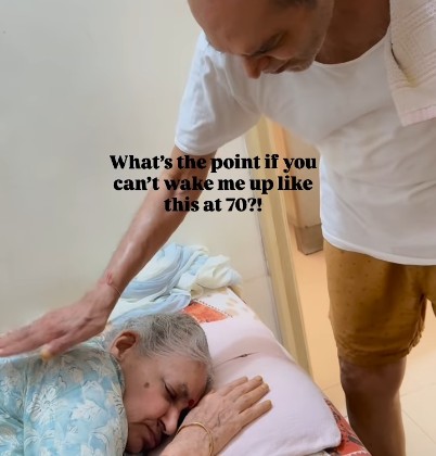 A short video posted on Instagram and shared widely shows a husband with Parkinson’s disease gently waking his wife by singing “Kya Khoob Lagti Ho” (from the 1975 film Dharmatma). Despite visible hand tremors, he sings the romantic lines with a soft, steady voice, creating a tender moment. His wife wakes up smiling, clearly moved by the gesture.