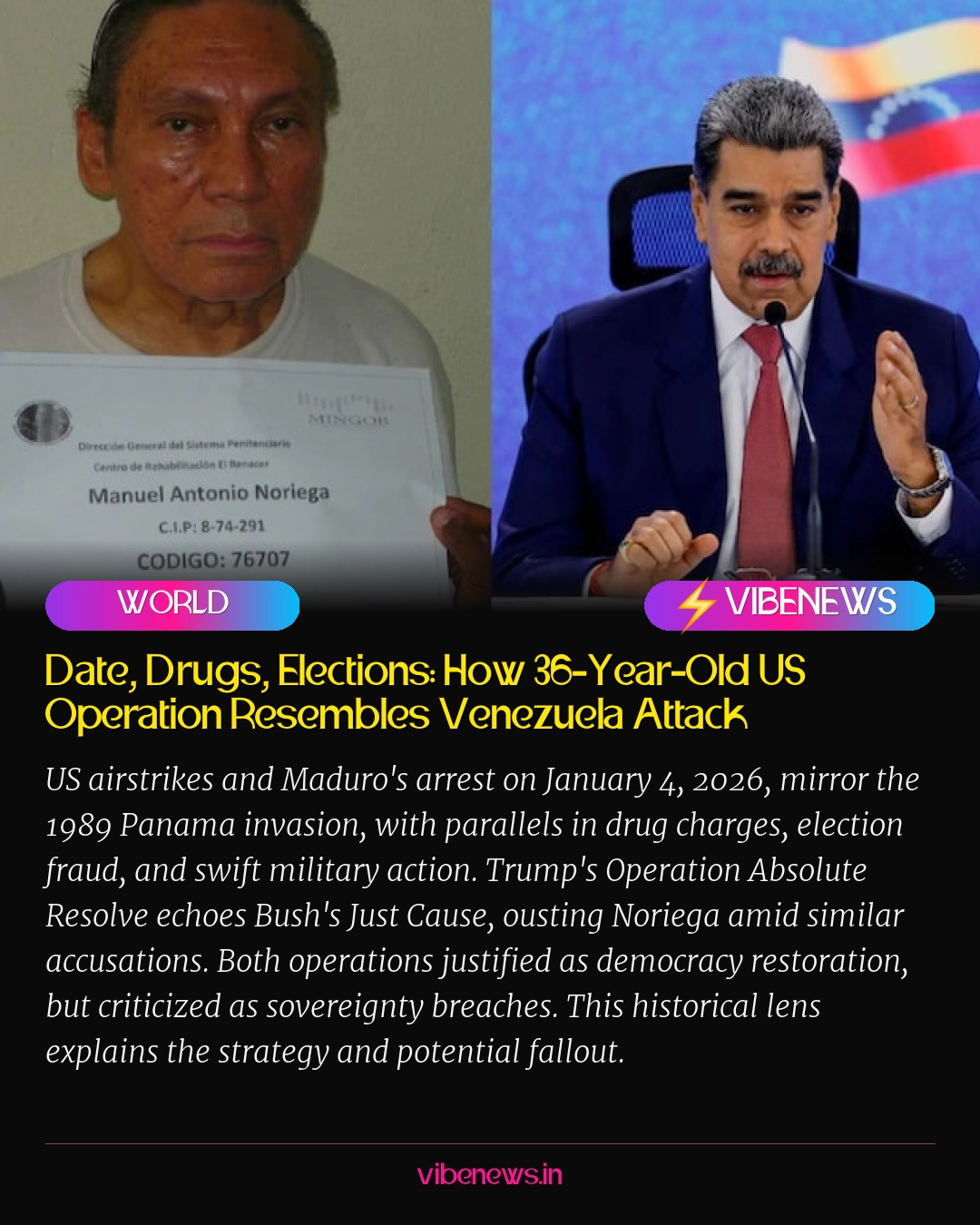 The Venezuela attack draws stark similarities to Operation Just Cause, where US forces invaded Panama to capture Noriega on drug and election manipulation charges. Both leaders faced indictments for narco-trafficking and rigging votes.