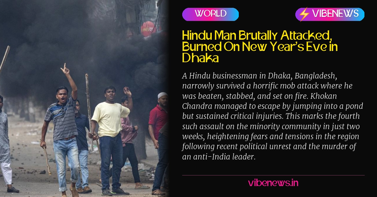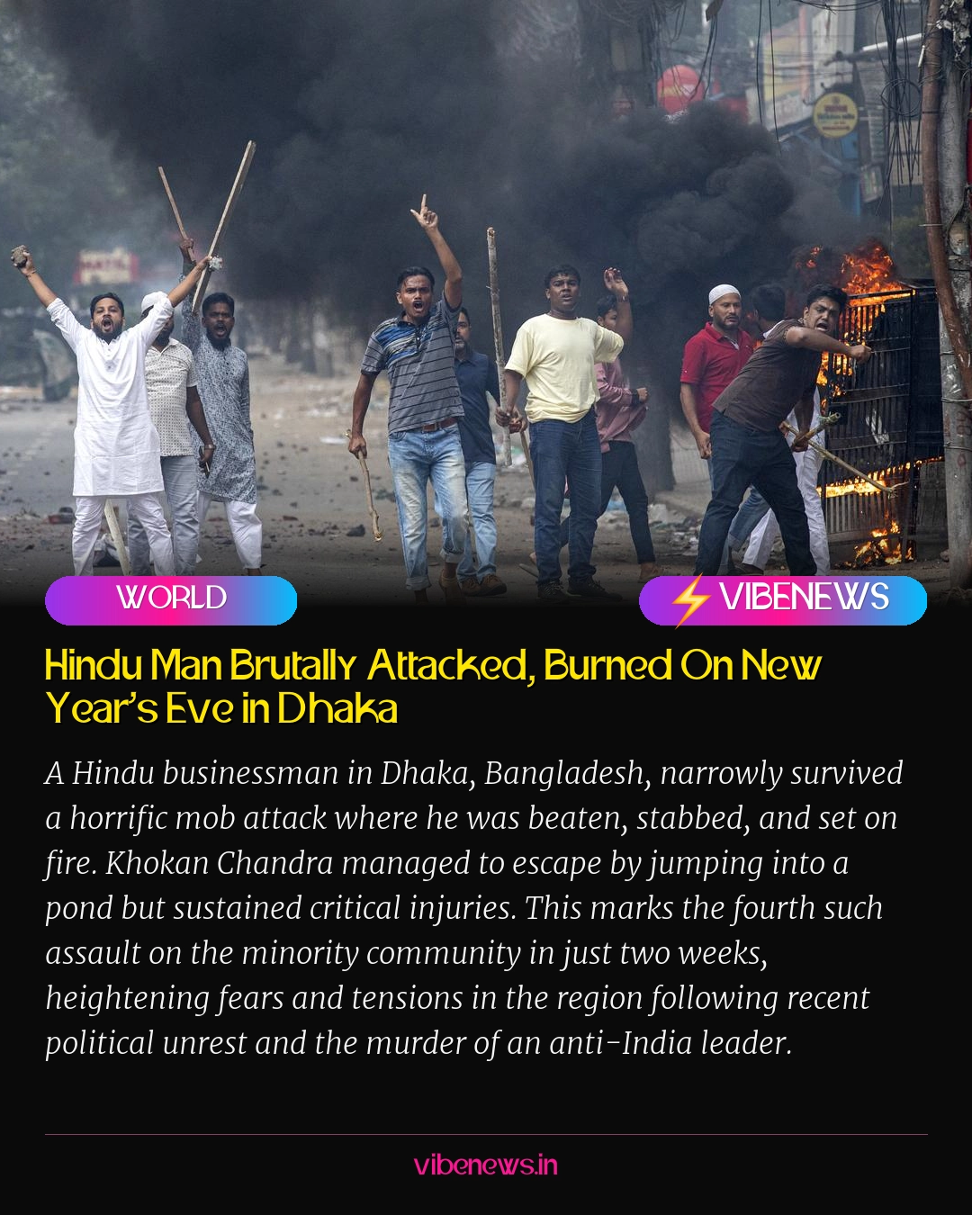 In a harrowing incident that highlights the escalating danger for minorities in Bangladesh, a Hindu businessman was brutally assaulted by a mob in Dhaka on New Year's Eve. Khokan Chandra, a 40-year-old pharmacy owner, was waylaid by a group of attackers who beat him, stabbed him repeatedly, and then doused him in petrol before setting him alight. In a desperate bid for survival, Chandra managed to jump into a nearby pond to extinguish the flames before being rescued by locals.