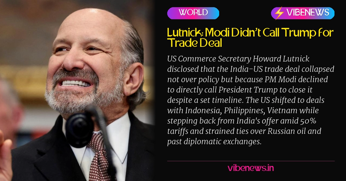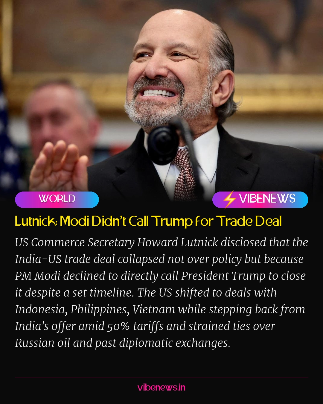 He contrasted with UK's quick success via Starmer's call. This followed reports of Modi refusing Trump's calls earlier and asserting independence on regional issues, plus no endorsement for Trump's Nobel hopes. The fallout included 50% US tariffs hitting India's economy. Lutnick said US has "stepped back" from prior agreement but "India will work it out"—door open?