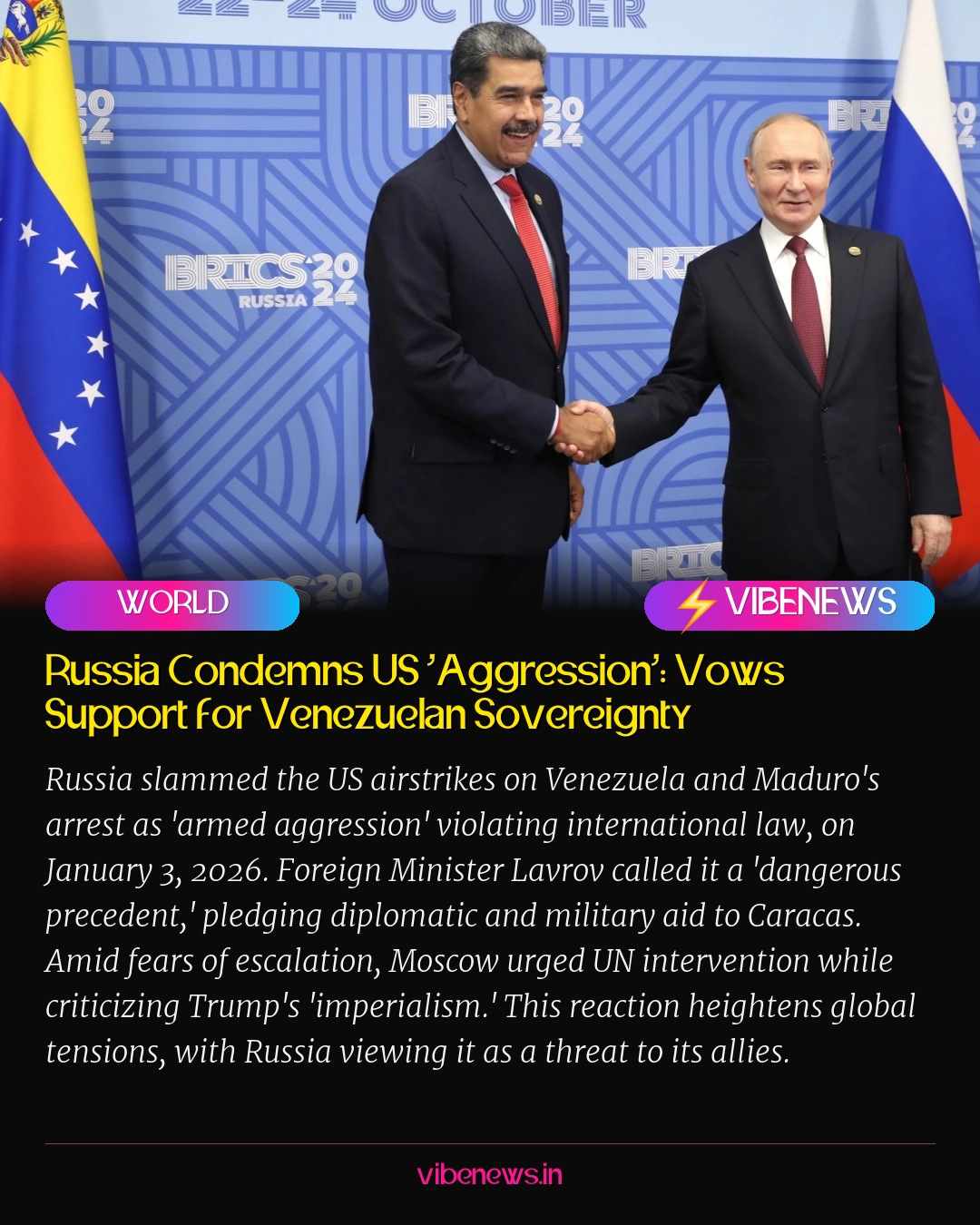 - Russia calls US strikes 'armed aggression' on Jan 3, 2026.