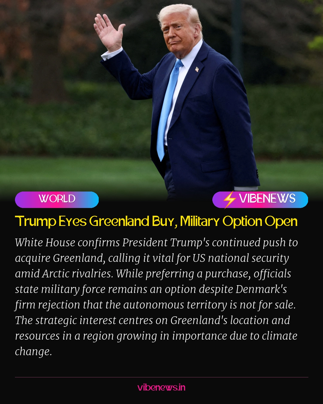- White House actively pursuing options to acquire Greenland as part of Trump's foreign policy agenda.